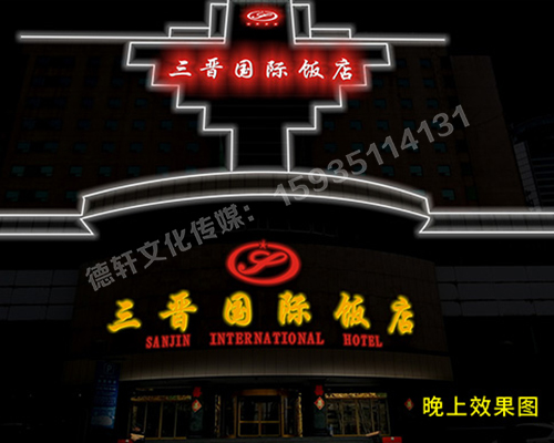 三晉國際酒店飯店 ——正門頭 吸塑面 不銹鋼鈦金包邊字                                                三晉國際酒店飯店 ——正門頭 吸塑面 不銹鋼鈦金包邊字